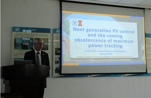 2018年4月19日,美国工程院院士、浙江大学-伊利诺伊大学联合学院执行院长Philip Krein教授受聘我校顾问教授。陈建国副校长,国际交流处廖小飞处长、何刚副处长,电气与电子工程学院陈晋党委书记、樊宽军副院长和蒋栋教授等出席了受聘仪式。