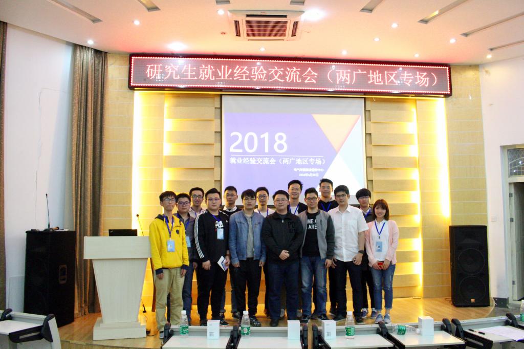4月26日晚,电气学院就业服务中心在西九楼502报告厅举办了就业经验交流会(两广地区)。就业服务中心工作的志愿者的邹竟成、杨之翰分析了2018届毕业生在两广地区的就业情况,分别签约广东电网,南方电网、广州供电局、深圳供电局的郭乾、罗奕、黄晨辉、高德民分享了他们在就业方面的宝贵经验并答疑。研究生辅导员雷浩楠到会并作交流总结。