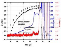 负极性操作冲击下10m棒-棒间隙中梯级下行先导与上行先导连接过程及其放电电流、电场参数